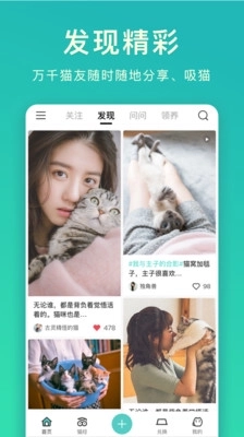 猫友们分享的精美猫咪照片实时更新,带你发现养猫的各种趣味。你也可以上传图片、视频或文章,参与猫咪相关话题,加入趣味征集活动,关注感兴趣的猫友,大家一起享受吸猫的快乐。