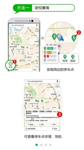 1、定位搜索,随时随地获取您周围的停车场信息。