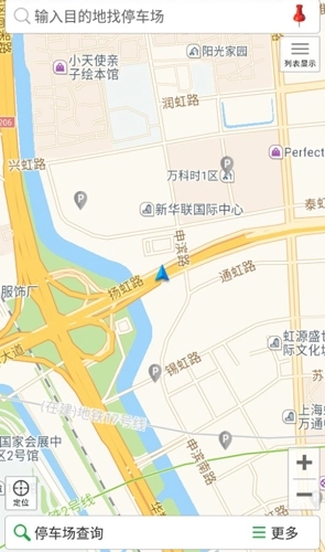 上海停车之后打开位置信息/GPS,然后软件就会显示你所在的位置了,可以看到周边有一些P图案的停车场。