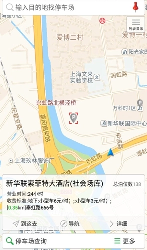 点击停车处,就可以看到具体的地图位置和收费标准了,我们可以点击导航到这里去。