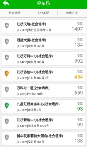 我们可以点开列表显示,可以以泊位空余数量、最近距离、费用来排序,相信大部分用户还是会以距离排序为优先顺序的。