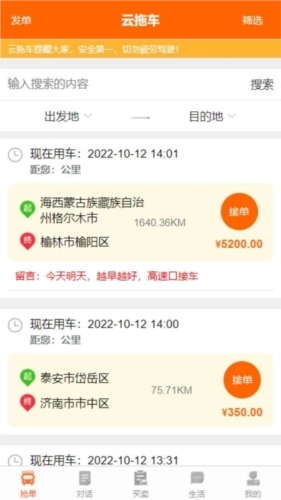 云拖车提供有订单管理服务,用户可到订单中心来查看全部的历史订单信息。