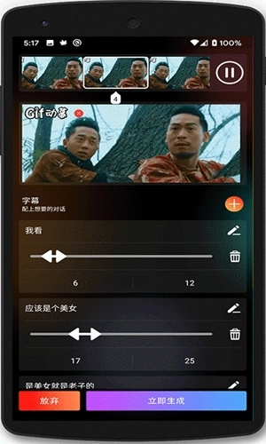 1、能够针对任意电影片段、电视剧片段、动漫片段等模板,进行字幕的使用与修改操作,简单便捷地制作出专属自己的gif。