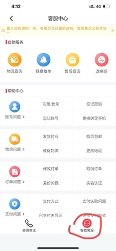 2.然后点击红圈中的“智能客服”就可以和客服取得联络啦!