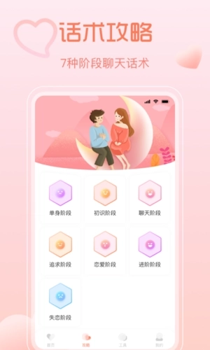 聊天秘籍是深圳市印象花田教育咨询有限公司打造的综合恋爱话术工具,帮你轻松掌握恋爱技巧,摆脱社交新手标签!软件收录了超丰富的聊天技巧供用户自主学习,针对不同场景提供对应的对话参考,每个话术都有独特内容。通过多学多看,能快速提升你的聊天能力,锻炼情商,还有详尽全面的指导满足你对高效沟通的需求,感兴趣的朋友不妨试试!