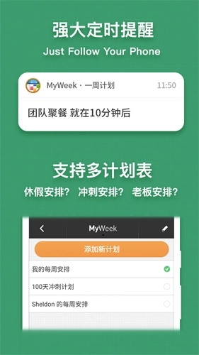 1.「每周计划一览」简洁明了,Now标识时间坐标,摇一摇会有惊喜