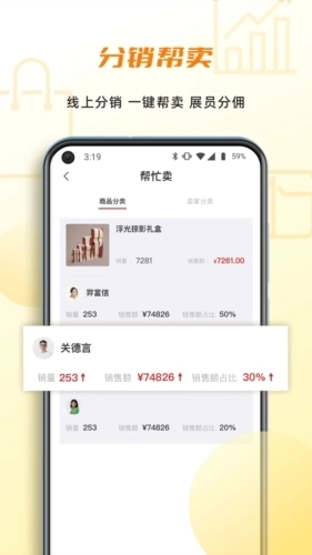 【分销帮卖】品牌商家入驻,个人用户零门槛成为卖家。做业传播、展位展销,快速组建线上分销团队。用户自由选择,一键轻松帮忙卖,交易成功后获得佣金。