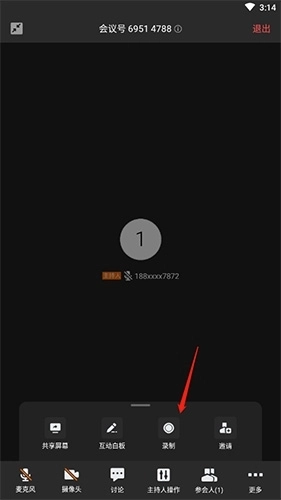 1、进入视频会议后,轻点空白区域,接着选择“更多”选项。
