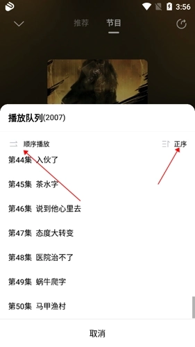 3.点击查看是否按照顺序播放,并且播放的列表是否为正序。