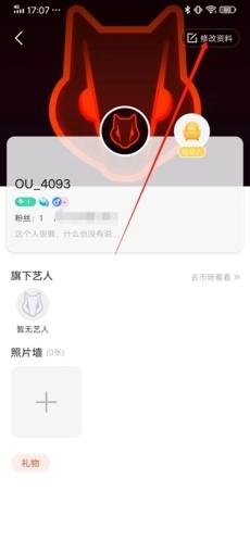 2、在个人页面中,点击右上方“修改资料”;