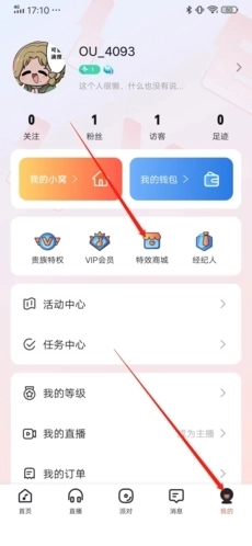1、进入后,先点击右下方的“我的”,接着进入页面里的“特效商城”。