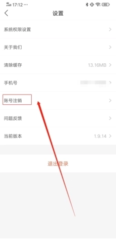 2、进入设置页面后,找到“账号注销”选项并点击进入;