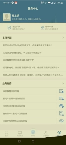 5.群众完成实名注册并开通账号后,就能使用互联网交通安全综合服务管理平台提供的驾考预约、车检预约、车辆号牌办理、交通违法处理以及罚款缴纳等各类服务。