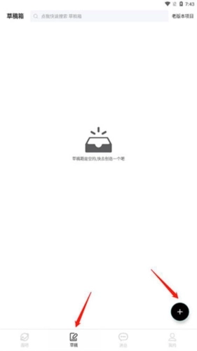 1、打开手绘动画视频制作软件,进入草稿界面,点击右下角的“+”;