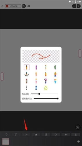 4、创建完成后就能开始绘画了,在下面选择画笔;
