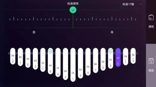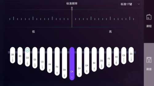 1、在拇指琴的调音界面右上角,设有一个切换功能,可让用户自由在标准17音与标准10音(C调)之间进行切换。