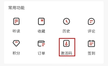 1、在个人页面中点击激活码按钮;
