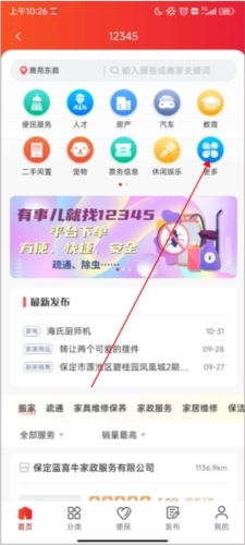 1、先在保定完成安装,打开软件后点击“本地生活”板块,从中找到“便民服务”选项。
