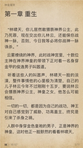 4、阅读设置:支持选择不同阅读背景、阅读方式、字体以及调节屏幕亮度等功能选项。