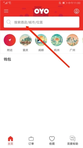 1、打开OYO家盟,选择上方“搜索框”选项,
