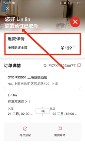 5、可看到提示“订单已取消”和“退款金额”详情。
