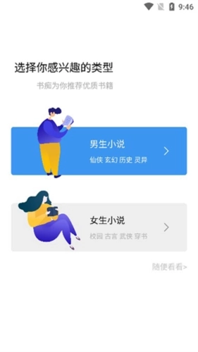 1、安装本站提供的书痴最新版本,打开软件后需选择自己喜欢的兴趣类型;