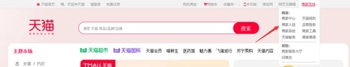 1、首先在浏览器搜索天猫,进入天猫,点击左上角的【商家支持】-【商家入驻】。
