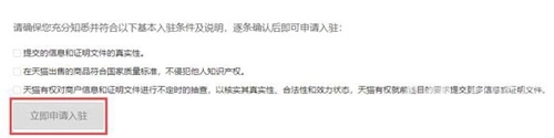 6、勾选下方的入驻条件及说明,点击【立即申请入驻】。