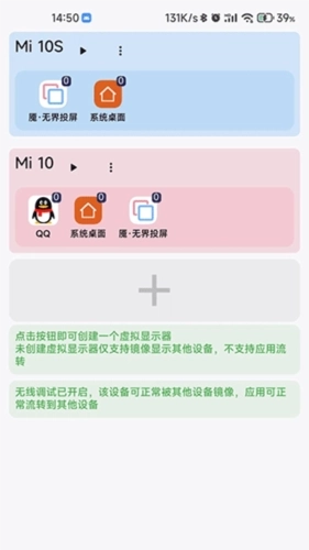 5、应用流转功能,需要手动创建虚拟显示器,之后你就可以把应用窗口单独显示在设备上了,目前不限制数量、不限制应用。不过经过一些小伙伴测试,似乎在一些机型上这个功能用不了。