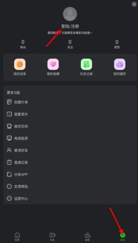 1、在狮子影评我的页面中点击登录/注册按钮;