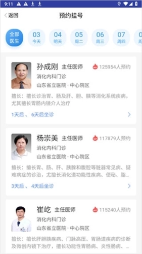 健康济南平台为患者提供济南市各医院所有专家、院士的详细信息介绍,患者可通过客户端直接点击进行挂号操作。