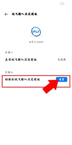 3、随后再次点击讯飞输入法,进入下方界面,能看到第一步已完成,接下来我们点击第二步的“设置”选项。