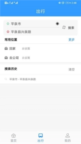 4、应用中有出行线路规划服务,帮助用户规划公交、自驾和步行三种出行方案;
