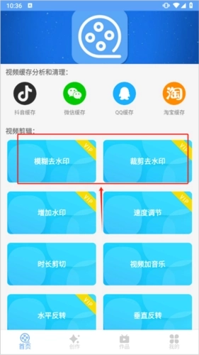 1、在首页选择模糊去水印或裁剪去水印功能