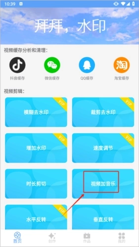 1、在首页内点击视频加音乐功能