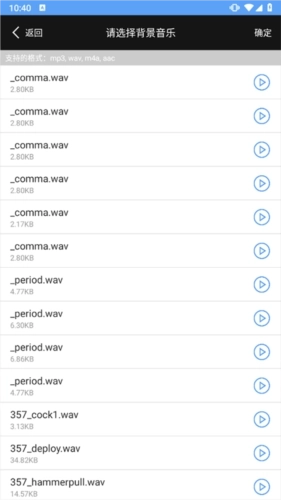3、挑选你想添加的背景音乐(可支持的音乐格式包括:mp3、wav、m4a、aac,若使用其他格式,添加操作可能无法成功)