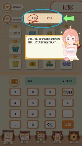 1、选择记录性质,是支出还是收入。