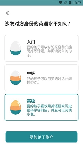 3、然后选择孩子目前的英语水平,就可以下一步了。