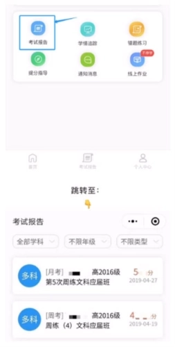 点击首页的考试报告进行查看