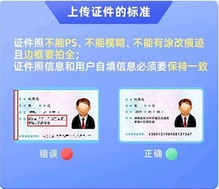 提示:证件照注意不能PS、不能模糊、不能有涂改痕迹且边框要拍全,证件照信息和用户自填信息必须要保持一致