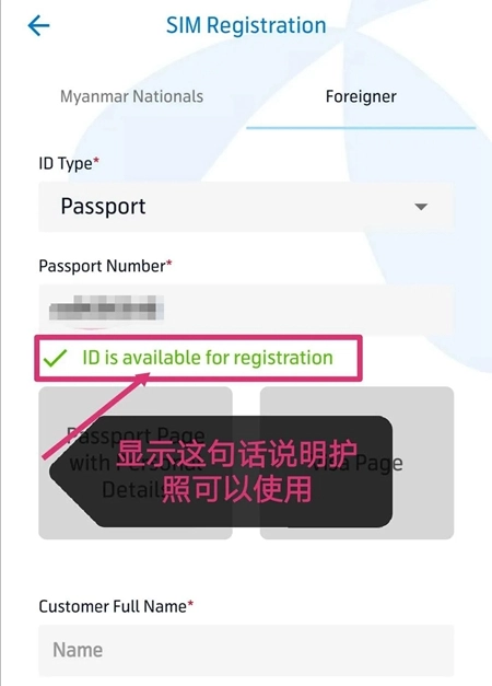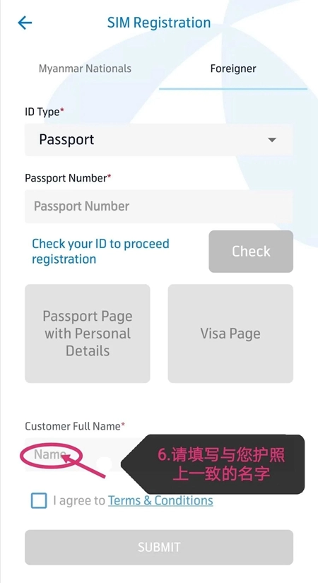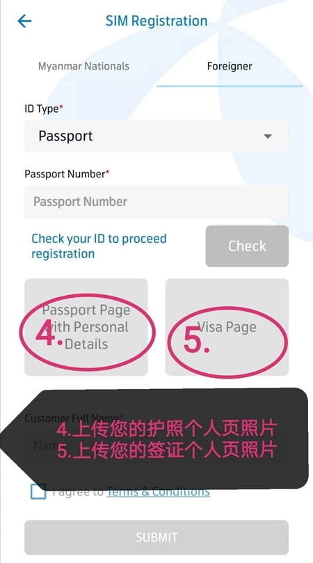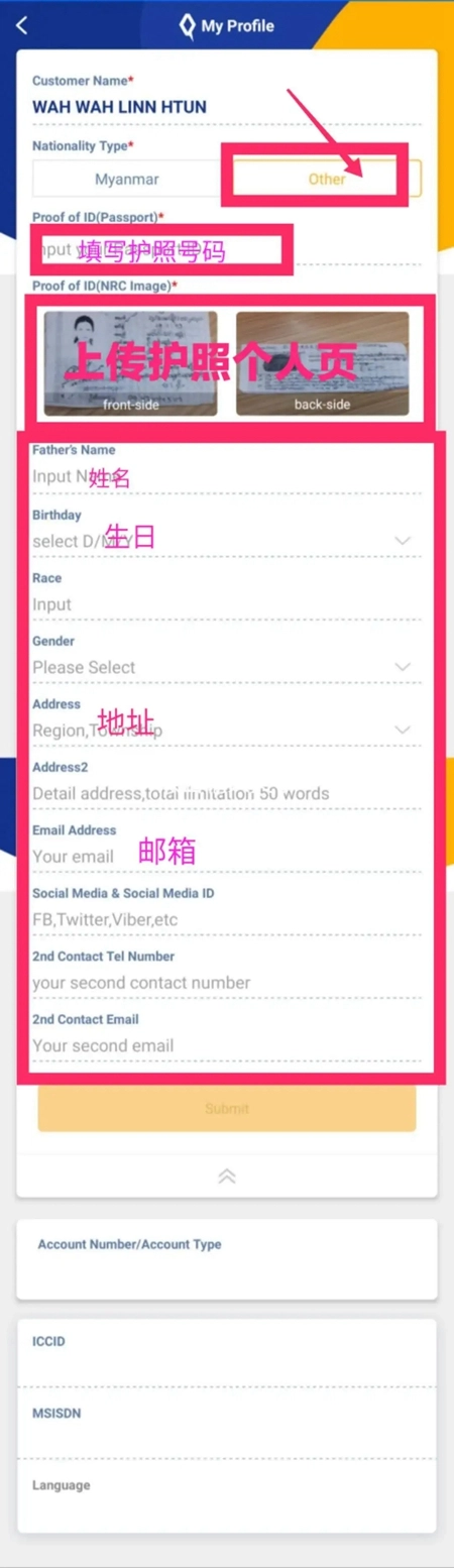 ③若您非缅甸籍人士,则需准备好有效期内的护照个人页照片并上传,随后填写基本信息提交即可。