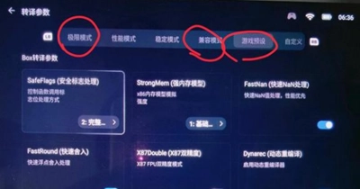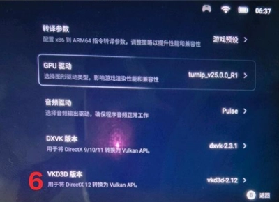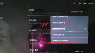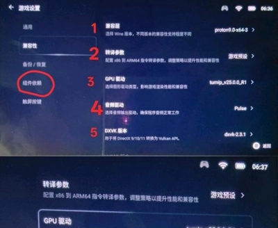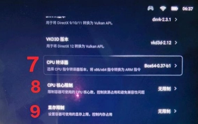 CPU转译的设置通常保持默认就行,但如果兼容层选择的是W-X64,这里就得设置成使用最新的box64-0.37b1,手柄才能正常工作;要是兼容层选的是P,那就没什么影响了。