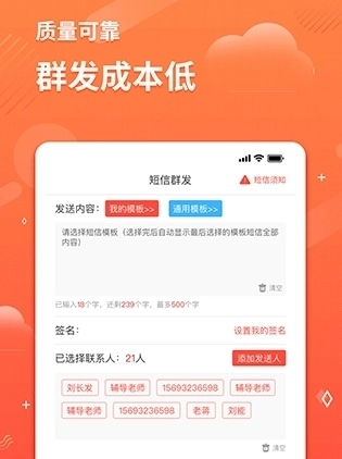 1、个性化的短信设置功能,满足了企业或者个人的使用需求。
