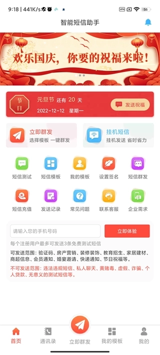 [节日模板]各行各业广告短信模板。无需为短信内容操心,拿起手机选择模板,即可群发。