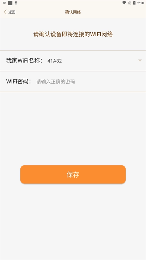接着输入两个设备所在同一网络环境的WiFi名称和密码,再点击保存;