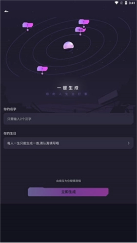 5、如果是新手用户,推荐选择【一键写歌】功能,只需输入两个汉字的名字以及你的生日,就能启动生成流程。