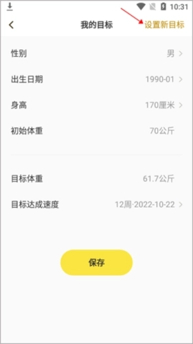 2、查看自己的初始目标后,点击右上角的“设置新目标”按钮。