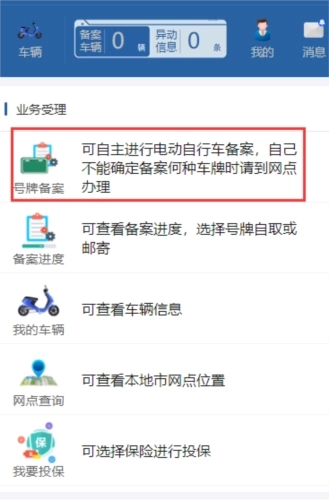 可自主进行电动自行车备案,自己不能确定备案何种车牌时请到网点办理