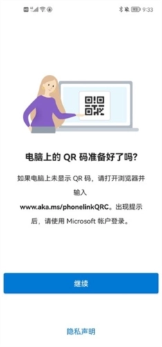 3、这个时候可以打开手机上的连接至Windows,选择通过二维码进行匹配;