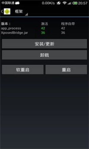 这里安装两个开源模块进行测试,请注意,安装模块并勾选后,必须重启手机才能生效。